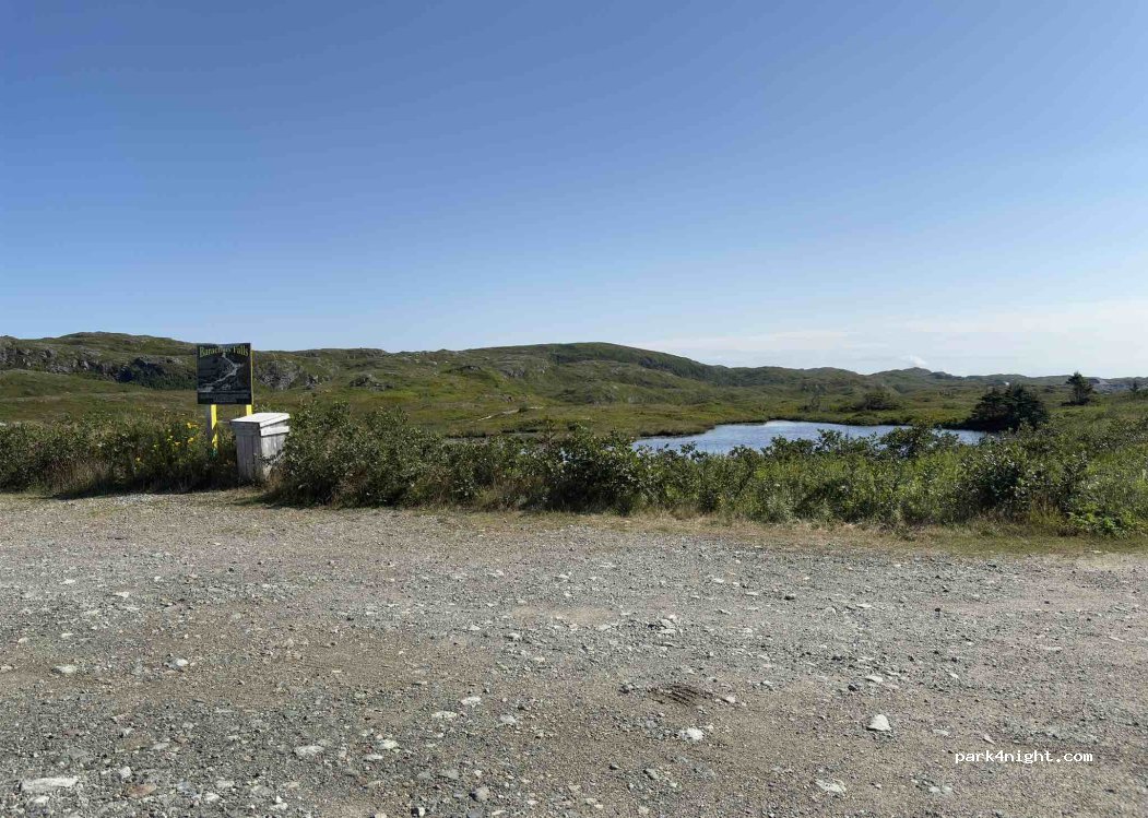 Small parking lot at the start of a short walk that leads to a waterfall. The surroundings are beautiful. Parking on the side of the road but very little traffic so very quiet. Possibility of parking 2 to 3 vehicles. Small trash can