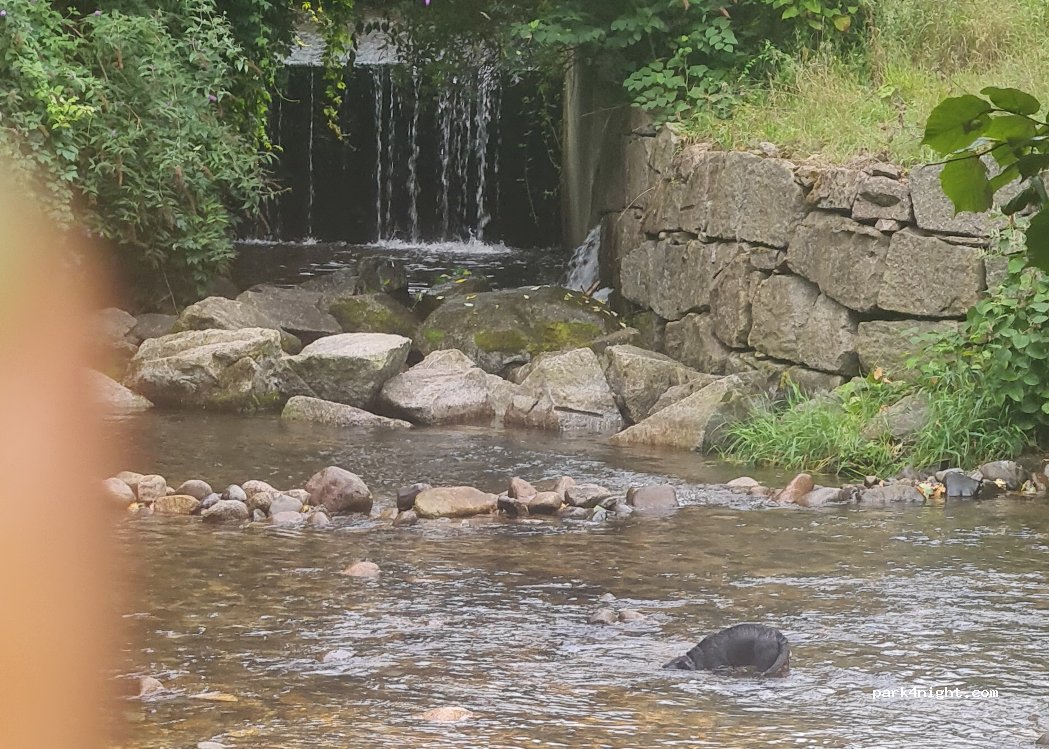 Peaceful place on the edge of a river, possible to swim there, there is a swimming pool 1 minute walk away (paying), no trash, park 5 minutes walk away