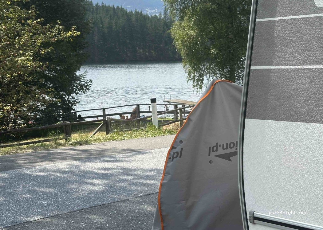 Ein kleiner Parkplatz, den wir tagsüber auf der Suche nach einer Erfrischung gefunden haben. Direkt daneben ein Privatstrand mit Bar und Steg zum Springen ins Wasser. Es gab keine Informationen zu Gebühren, und wir blieben nur tagsüber.