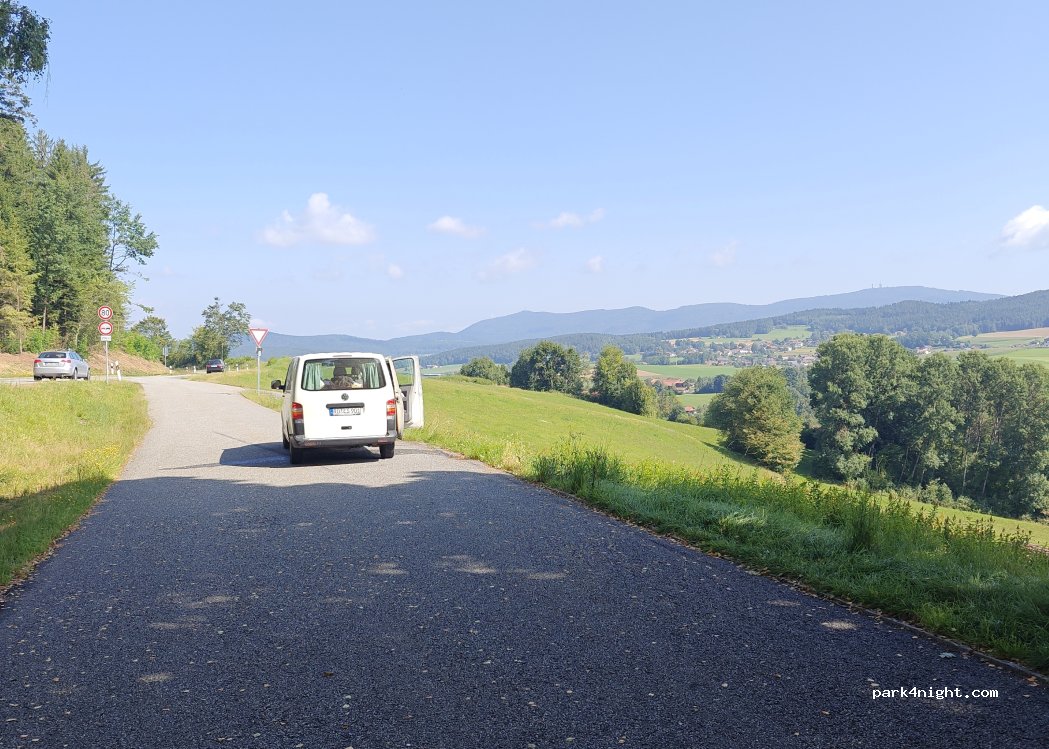 Öffentlicher Parkplatz in der Nähe der Hauptstraße. Schöne Aussicht und ebene Stellplätze. Parken ist erlaubt; Parkbeschränkungen sind nicht erkennbar. Picknickplätze sind vorhanden.
