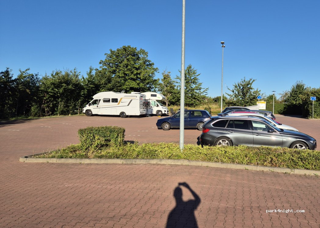 Der Parkplatz ist vorm Rewe Richtung weißen Silo zu finden. Der Platzt wird von Mitarbeitern und Anwohnern für die Hunde Runde genutzt. Bitte an die Camperregeln halten. Lag Müll und Hinterlassenschaften am Zaun. Haben den Platz sauberere Hinterlassen.