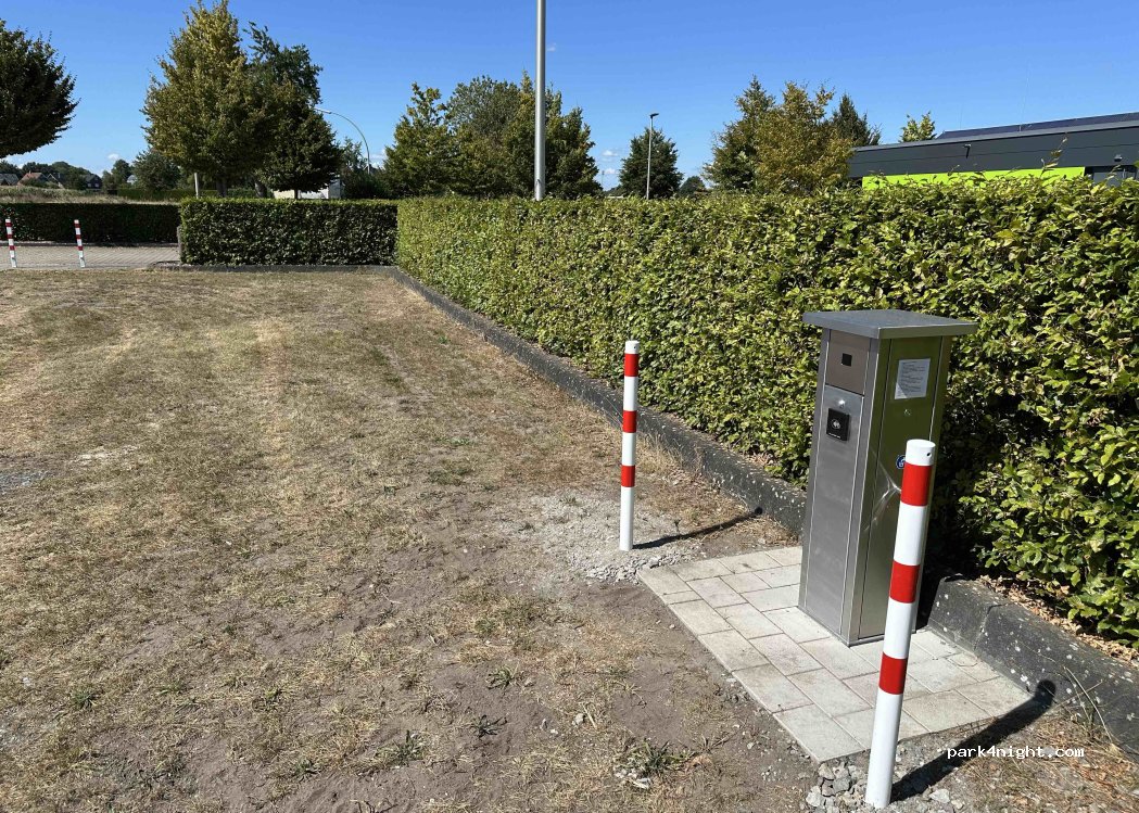 New parking area for four motorhomes up to 8 meters in length in Albersloh on the Werse river, next to a sports field. Overnight stays are free, as are wastewater and toilet disposal. The ground can be a bit muddy when wet. Good bus connections to Münster. Beautiful hiking and cycling trails lead through the Hohe Ward nature reserve to Lake Hiltrup. Payment by debit or credit card directly at the terminal.