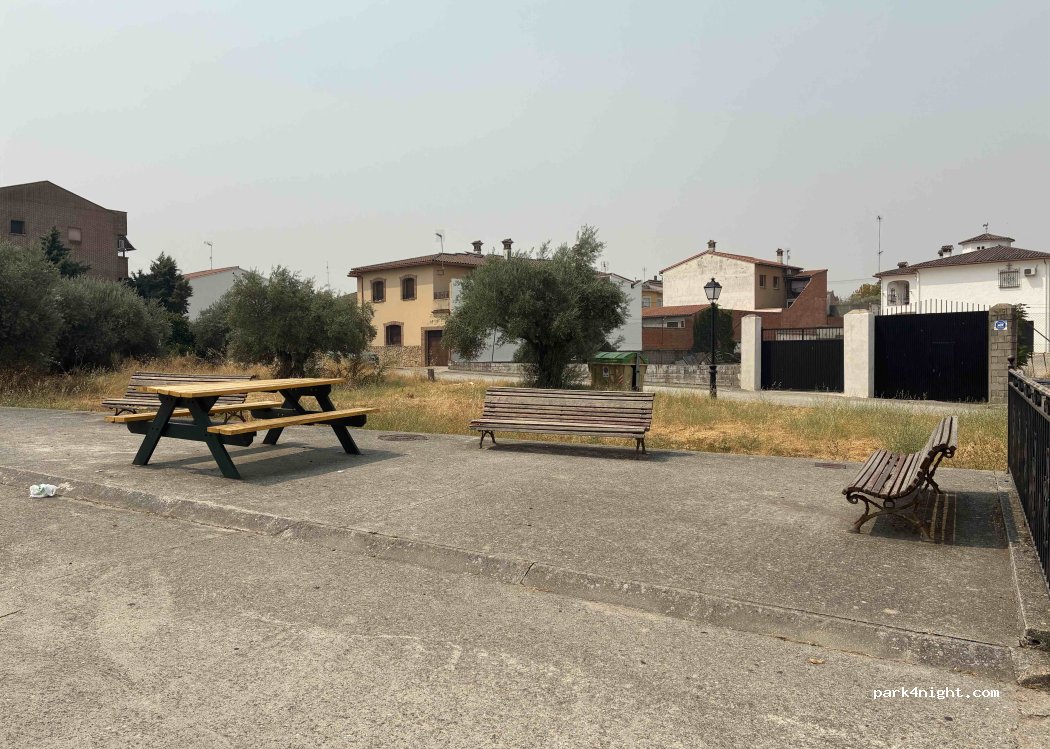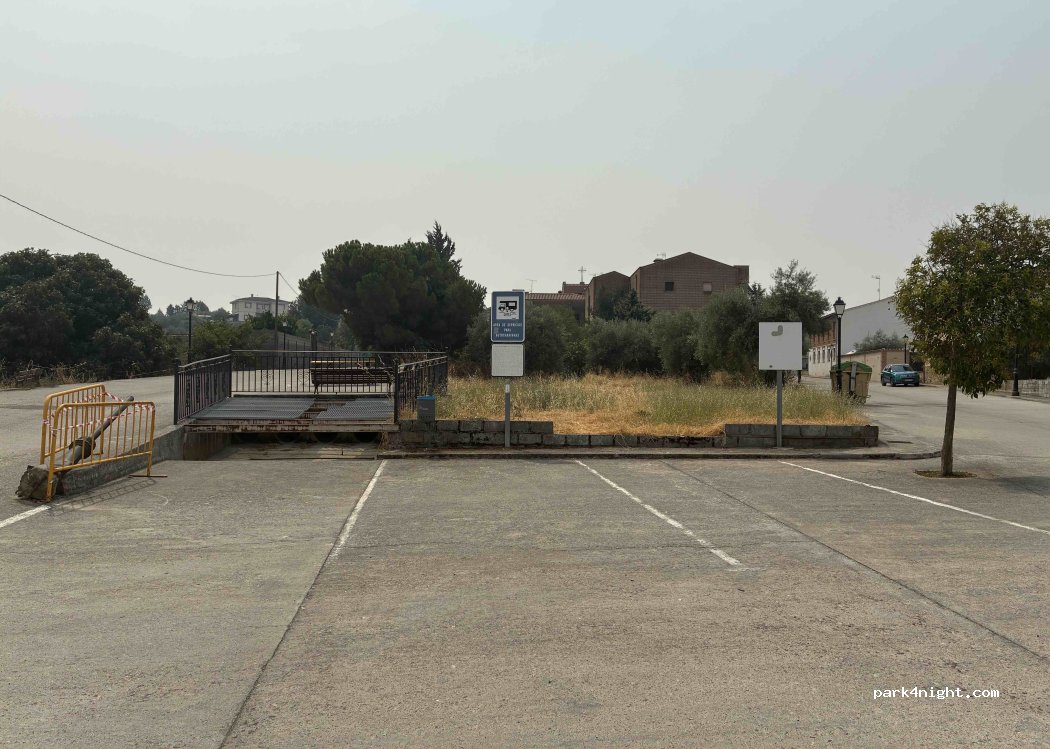 Aire gratuite de 3 places. Évacuation des eaux grises et noires. Le robinet ne fonctionne pas. Table de pique-nique et bancs.