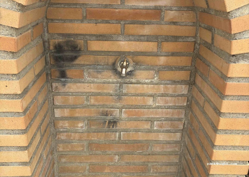 Free area with 3 spaces. Gray and black water drainage. The tap doesn't work. Picnic table and benches.