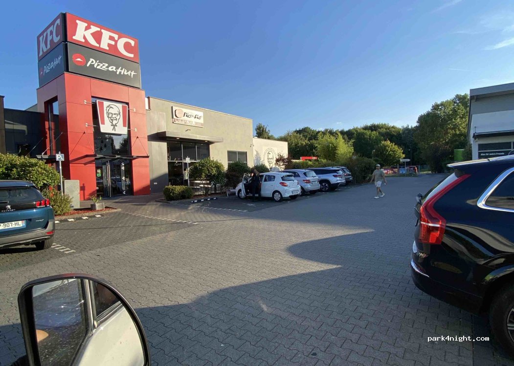 Convenient parking for a 10-minute bike ride to the Frankfurt station. Supermarket and KFC nearby.