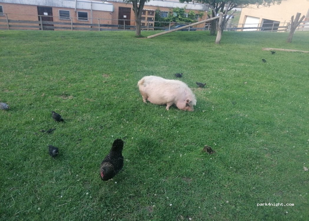 Campeggio per famiglie, bellissima fattoria con maiali capre galline e conigli. Un bel playground, quando siamo stati noi era pieno di bambini. Scarico e carico acqua compresa, elettricità a pagamento extra. Bagni e docce puliti.