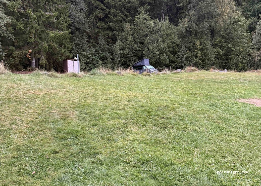 Hermoso lugar con acceso directo a la piscina. Hay un baño exterior, pero estaba un poco sucio cuando estuvimos allí, ¡así que no lo necesitamos! También es un excelente punto de partida para hacer senderismo. Perfecto para salir por la noche, ¡y el sol de la mañana es un sueño! Fuimos a nadar y fue maravilloso. Muy recomendable. ¡Una noche muy tranquila junto al lago, lejos del bullicio!