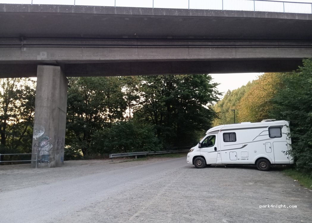 Shady spot!!! Especially great for dog owners... the shade is provided by the bridge over the road. The parking lot is right on the Sieg River. The Siegau meadows are directly on the other side. A bike path runs past the parking space. Shops (Rewe, Lidl, Aldi), doctors, and the village center are within walking distance. Kebab shop, ice cream parlor, etc. are also within walking distance. No through traffic as it's a dead-end street.