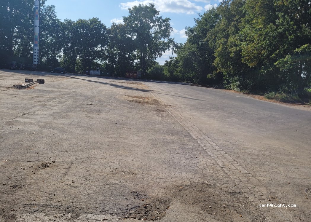 Parking lot for abandoned swimming pool. Does not feel safe
