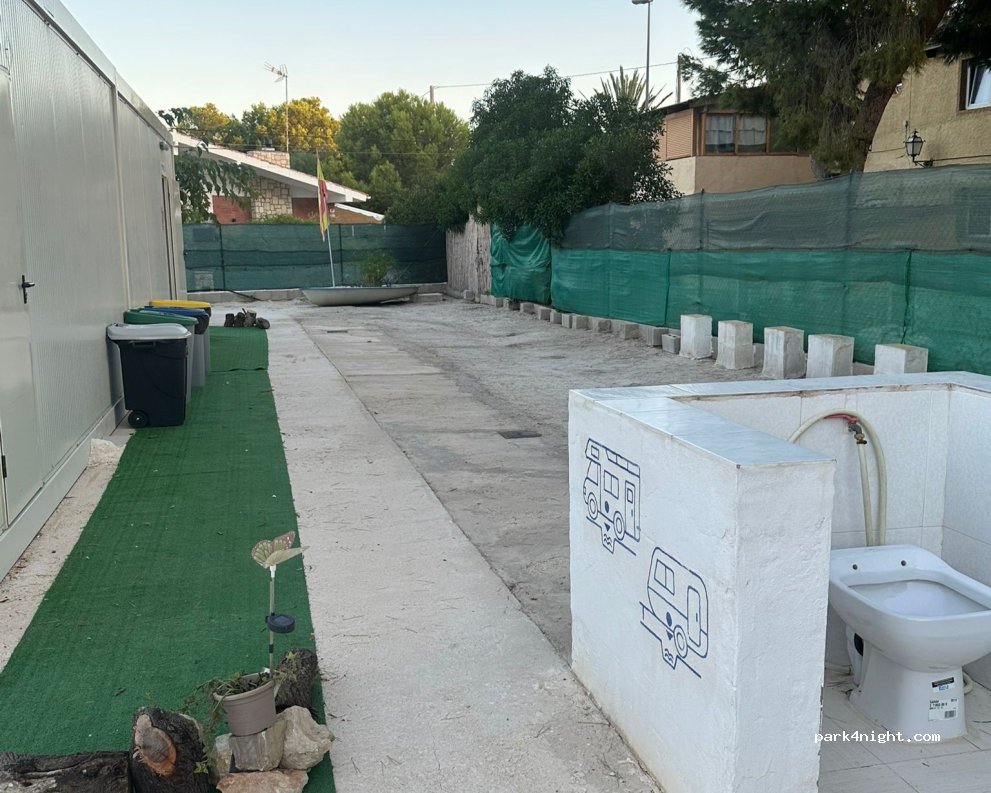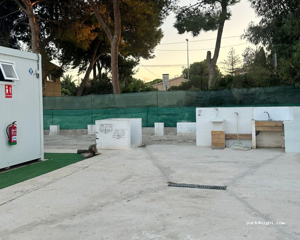 area camper piccolina ma molto ben tenuta, molto pulita, bagni e docce, carico scarico, prezzi...10€ al giorno con camper piccoli senza corrente (4€ in più con corrente) comoda per visitare Benidorm o Alicante in treno... grazie, ci torneremo sicuramente.