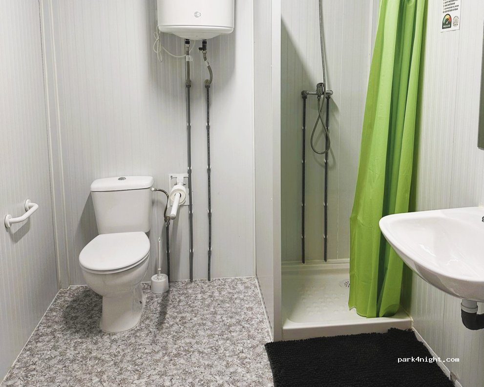 L’aire dispose de sanitaires avec douches, d’une zone de vidange et de remplissage des eaux, d’une laverie équipée de machines à laver et de sèche-linge, ainsi que du WiFi gratuit. Vous trouverez également un espace barbecue et un environnement soigné qui combine proximité de la mer et tranquillité pour se reposer.