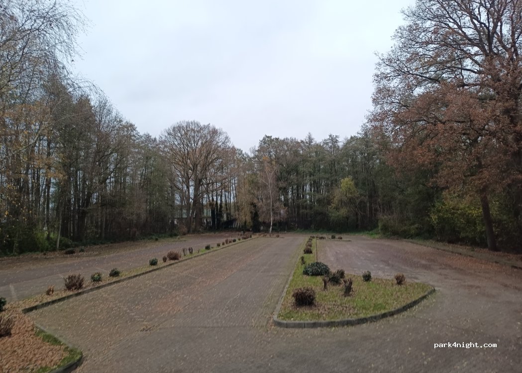 Großer Parkplatz, auch für große Fahrzeuge geeignet. Hunde können spazieren gehen, Katzen auch.