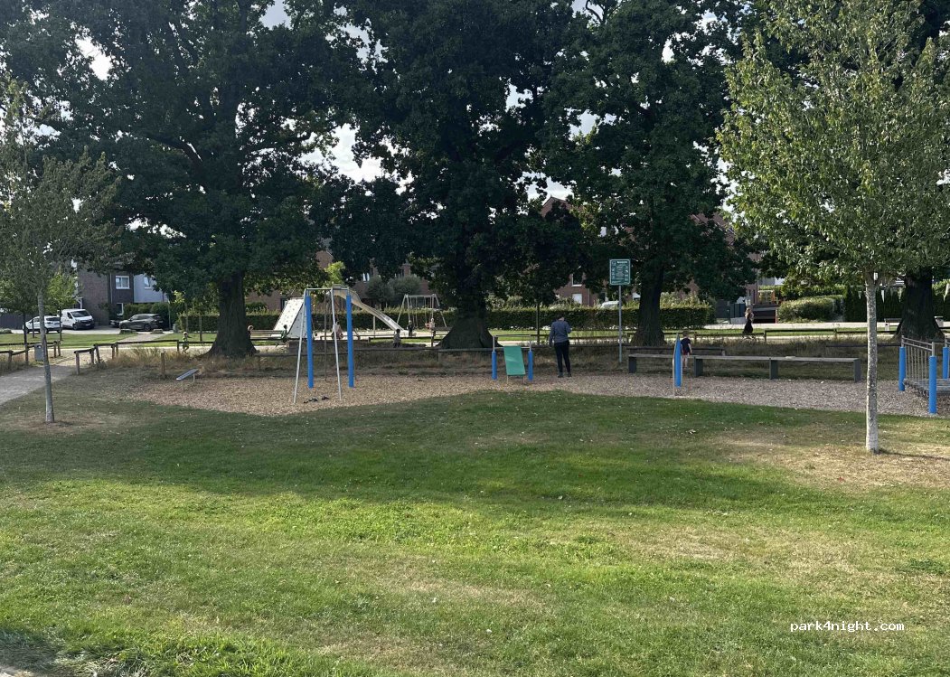 Parking dans un quartier résidentiel, à côté d'un petit parc avec aire de jeux. Idéal pour une pause. À 2,5 km de l'autoroute.