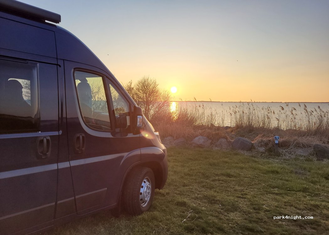 Schöner Platz, große naturbelassene Stellplätze und ein traumhafter Blick über den Bodden nach Hiddensee. Und erst der Sonnenuntergang - sehr sehr schön! 2 Erwachsene + Womo = 24 €; leider exkl. Strom und Duschmarken