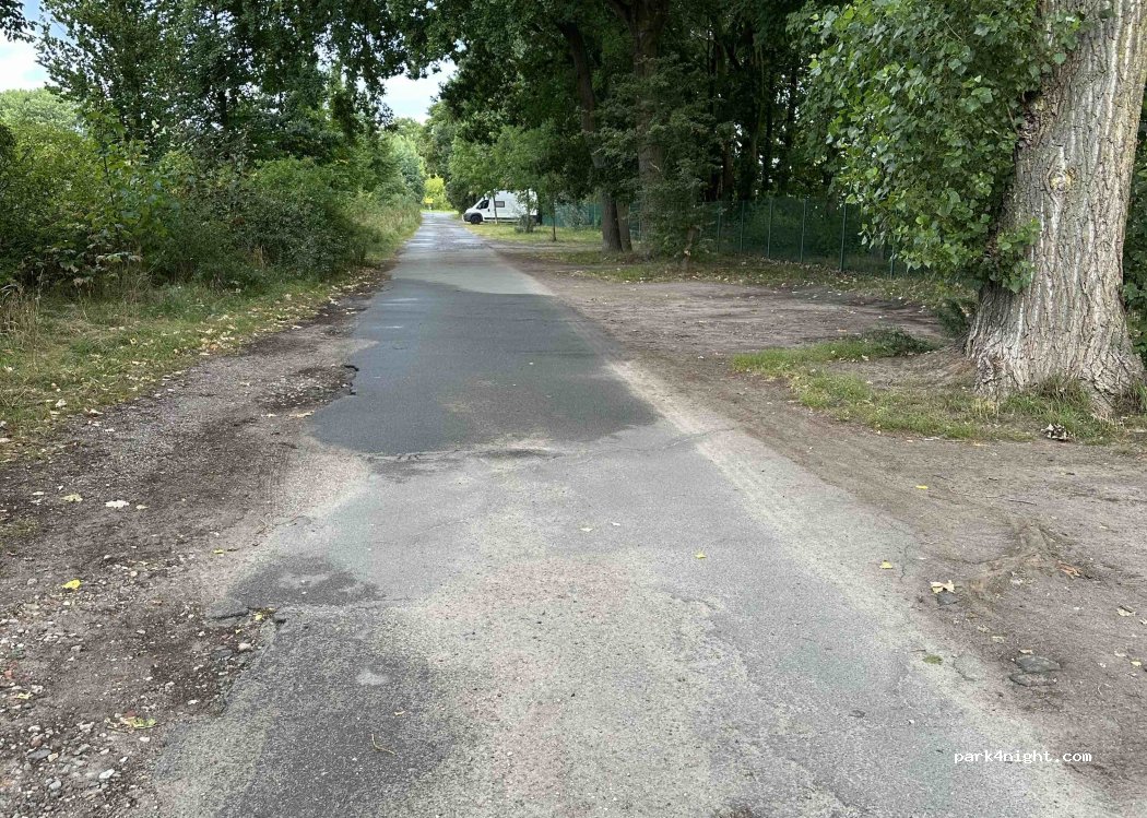 Public parking on the Elbe island near Geesthacht. The parking bays are approximately 6 meters long, so you may need to park diagonally.
