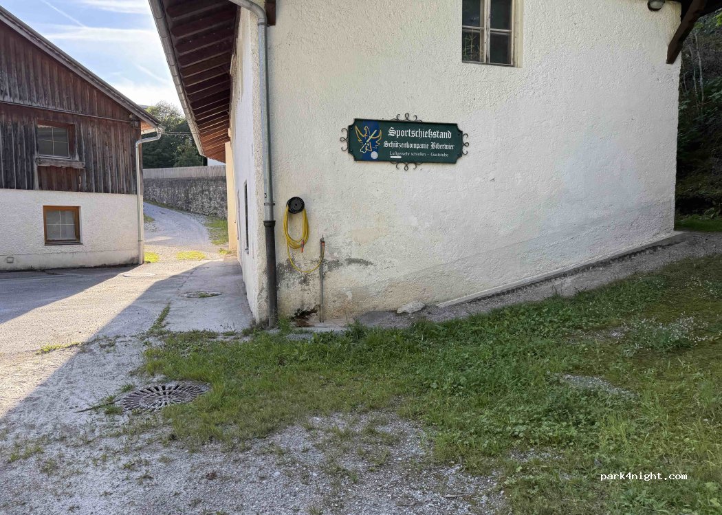 Wasserhahn mit Schlauch und Trinkwasser zum Befüllen des Tanks.