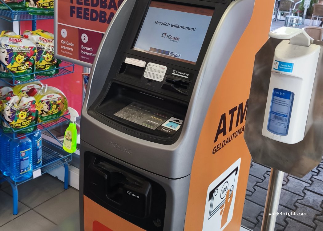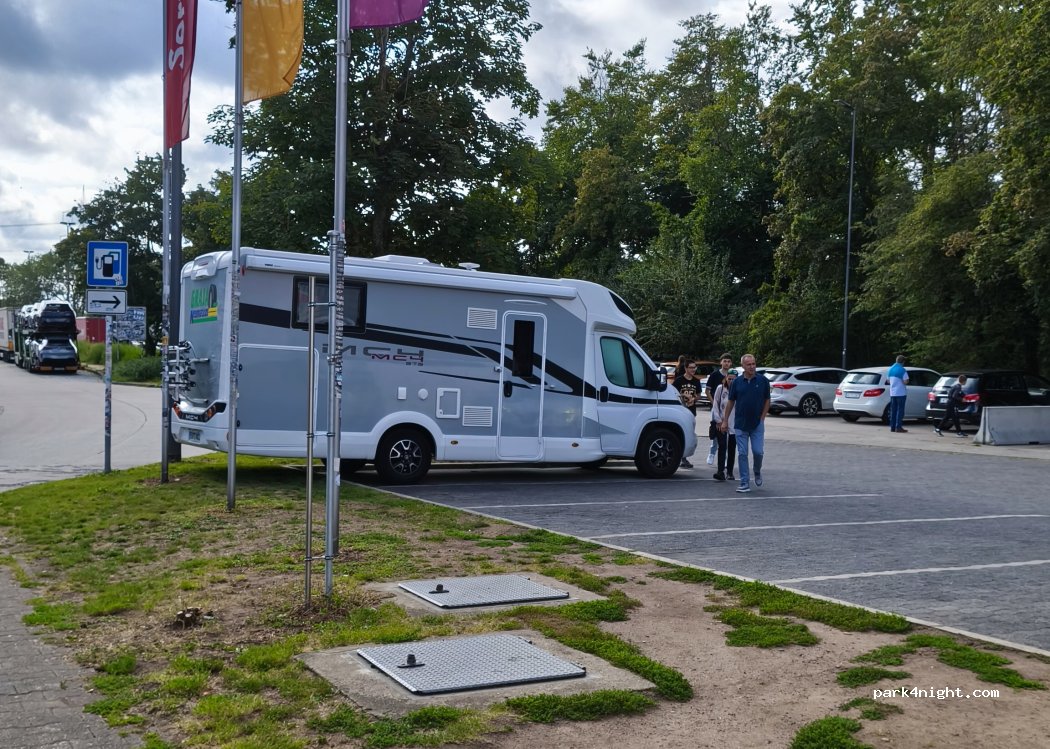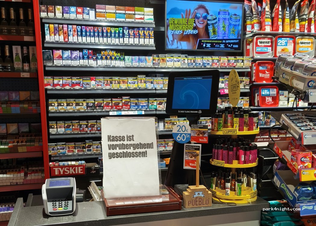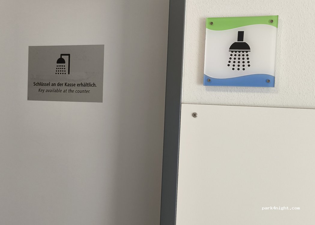 We stopped here for the night. There are large parking lots for RVs, a gas station, a restaurant, and restrooms (€1 to use), all super clean and tidy. We also saw showers. There's a place to buy tobacco and a machine to withdraw cash.