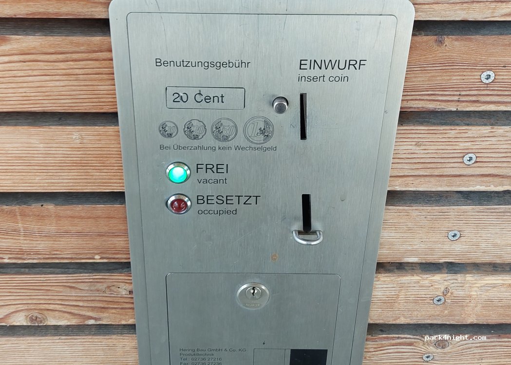 Baño público, ubicado justo en la estación de tren de Wasserburg. Hay una panadería a unos 20 metros. Baños para hombres, mujeres y personas con discapacidad (con llave europea). Cumple su función, pero está bastante limpio. Precio: 0,20 céntimos.
