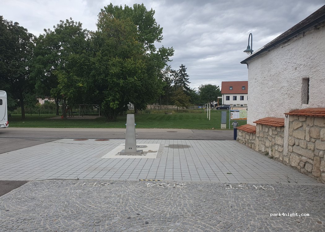 Die Gemeinde gibt an, an diesem Standort zwei Parkplätze angelegt zu haben. Diese befinden sich allerdings rechts und links vom Wertstoffhof und können nicht genutzt werden, wenn dort jemand parkt. Das Wirtschaftsgebäude ist sehr schön und brandneu.