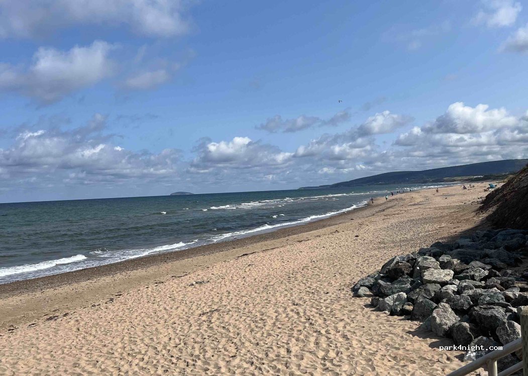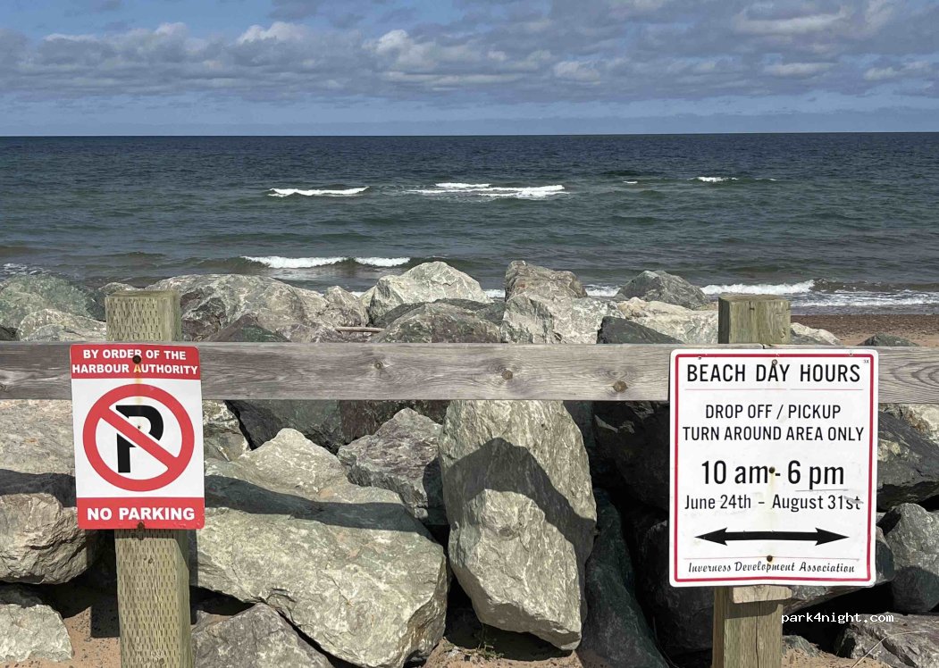 Duchas y baños al aire libre en la playa de Inverness. Aparcamiento diurno.