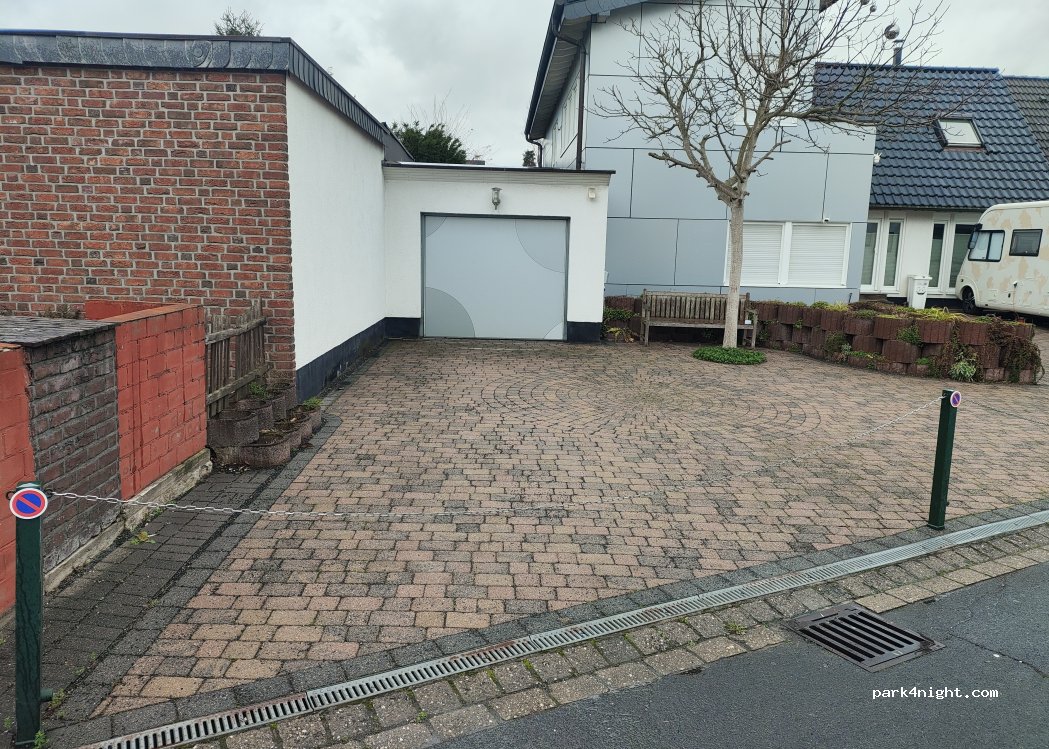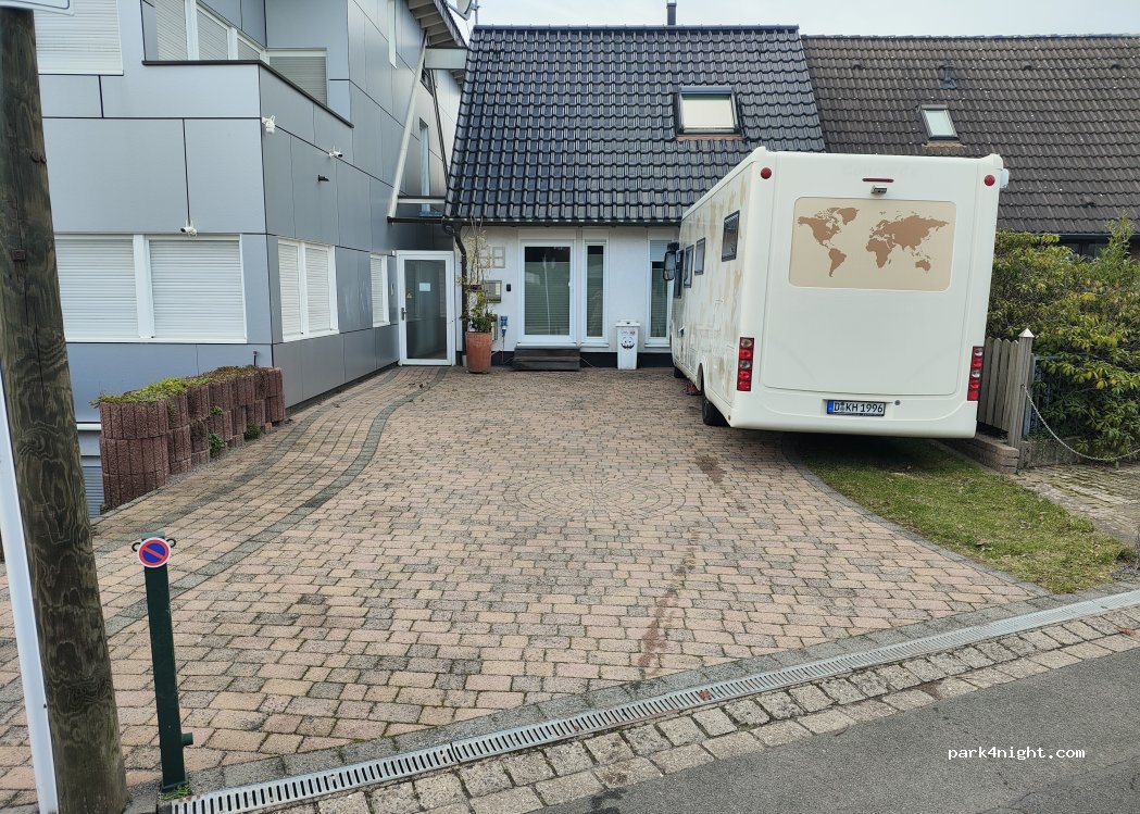 Private motorhome parking space in a quiet residential area.
