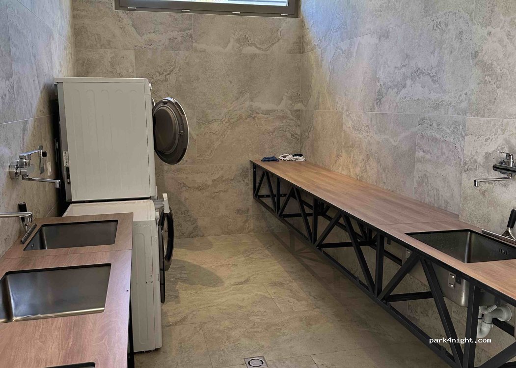 Positiv sind vier Kühlschränke (2 davon Tiefkühltruhe) die kostenlose für Camper zur Verfügung stehen. Waschmaschinen und Trockner sind ebenfalls kostenlos.