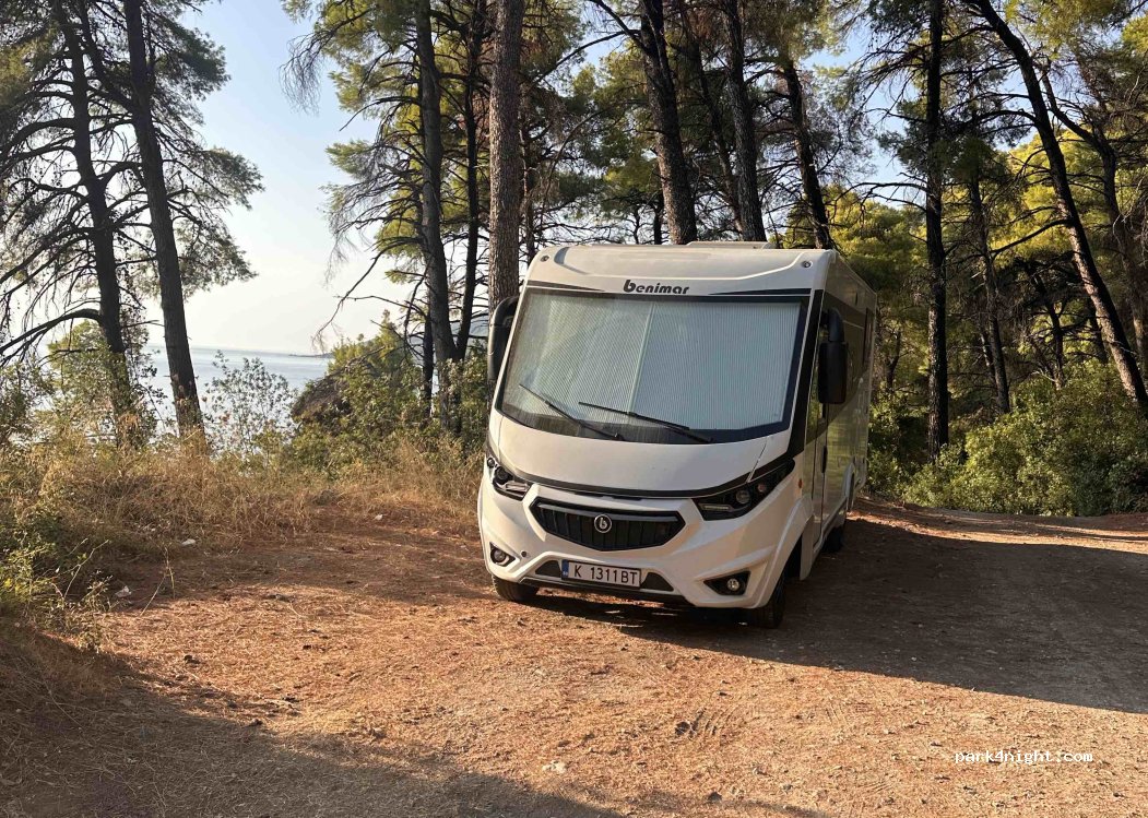 Platz für ein Wohnmobil, falls unten am Strand kein Platz ist. Wir sind mit einem 7,5 Meter großen Wohnmobil unterwegs