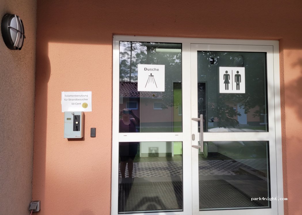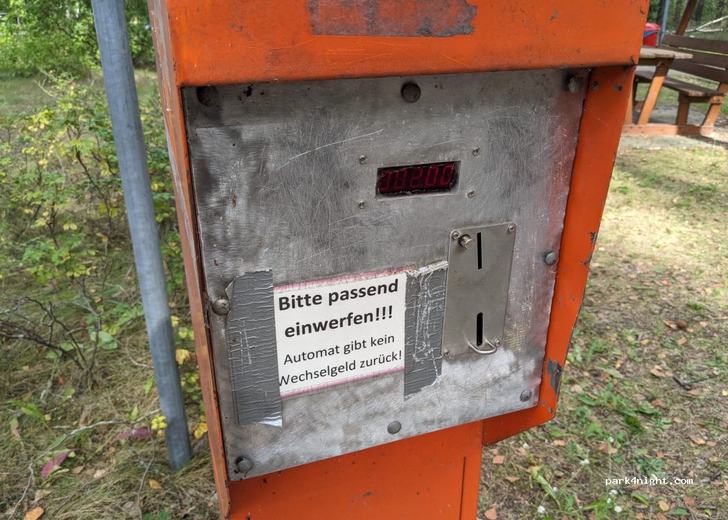 Aparcamiento en Briesensee con barrera, el lago está al otro lado de la calle.