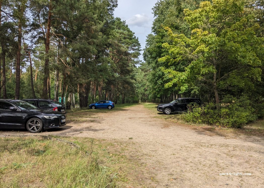 Parkplatz am Briesensee mit Schranke, See ist einmal über die Straße.