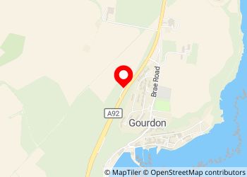 Just off the main road but sheltered by a hill. No sea view here. Snack van open. Near to village of Gourdon. No facilities or amenities.