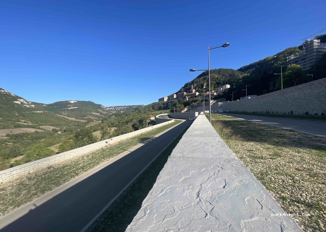 hors saison, nous sommes passés à Roquefort pour nos achats ! quelle belle découverte ce grand nouvel espace de stationnement en contrebas des caves ! ce 26 septembre, nous étions seuls pour y passer la nuit... au calme !!