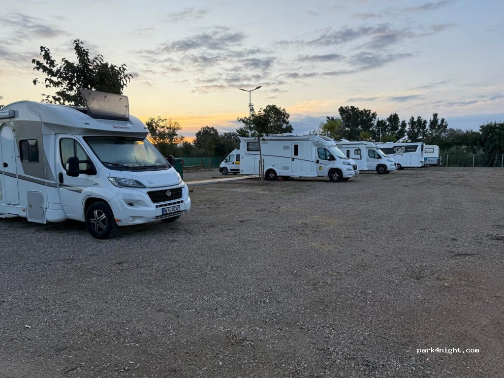 Ein Geschotterter Platz mit kleinen Parzellen. Ver und Entsorgung sind vorbildlich. Leider nur unisex Duschen. Der Platz ist direkt an einer Gokartbahn und einem Sportflugplatz, angrenzend an einer stark befahrenen Straße. Tagsüber sehr laut, spät Nachts relativ ruhig. Wir mussten aufgrund eines medizinischen Notfalls 2 Tage früher abreisen, bekamen aber kein Geld zurück. Wir kommen nicht mehr.