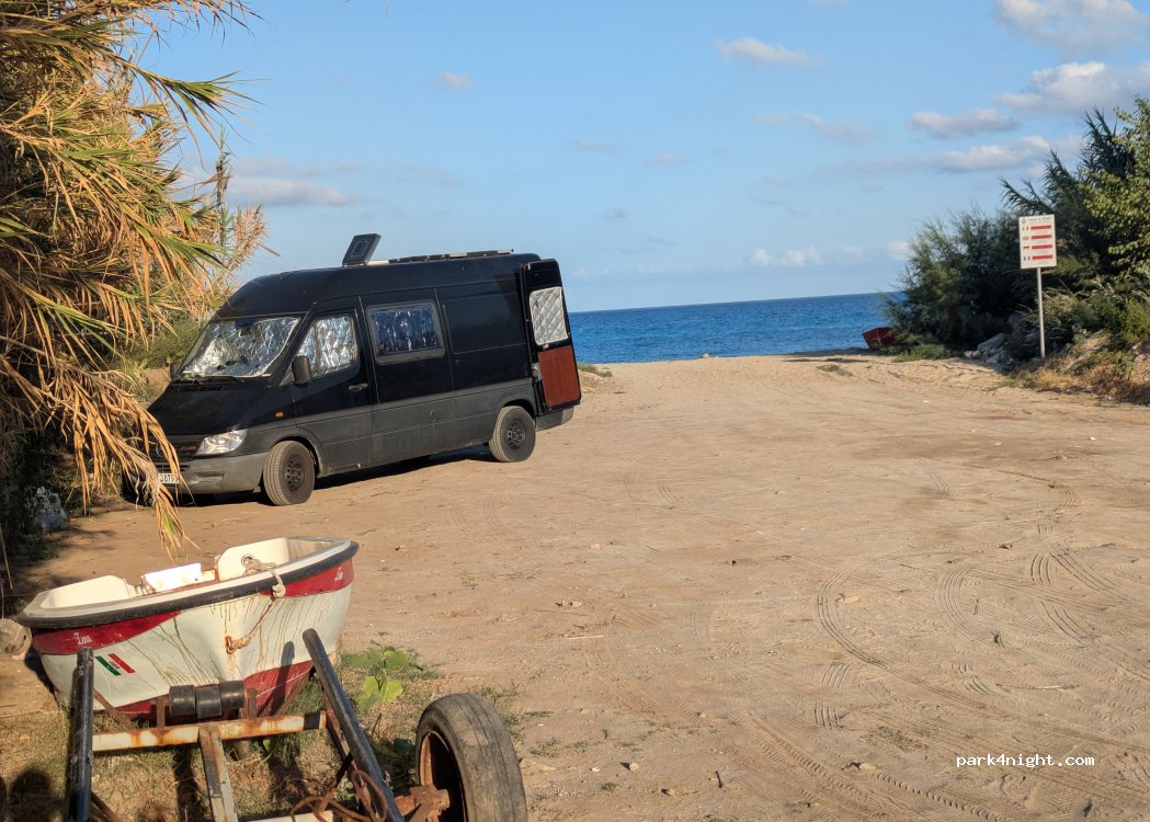 Il parcheggio è molto tranquillo. Solo poche auto sono arrivate la sera, per andare in uno dei lidi vicini (si sente un po' di musica, ma non troppo forte) o per sedersi in spiaggia. Non è un posto adatto ai giovani!
