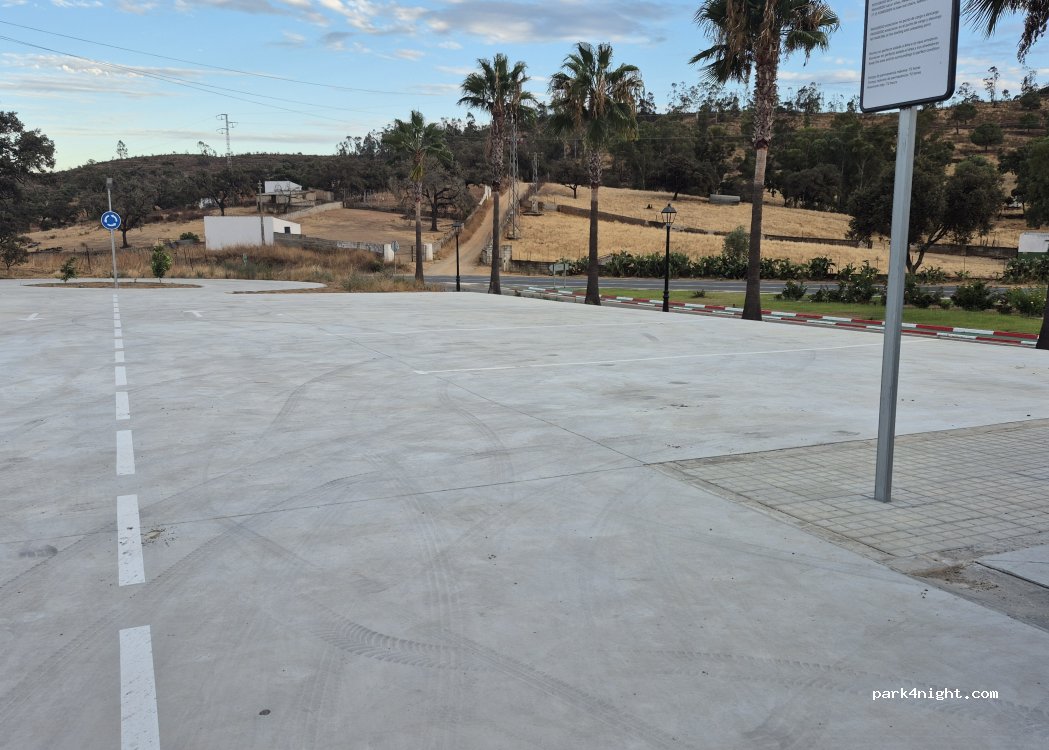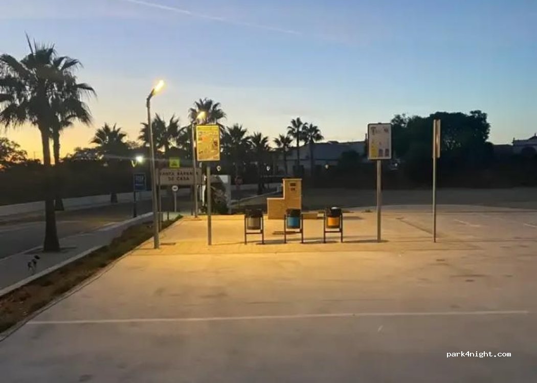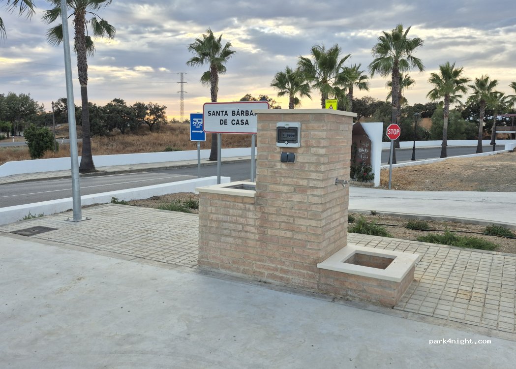 Motorhome park in Santa Barbara de Casas, with 5 spaces and two power outlets. Kudos to the town hall!