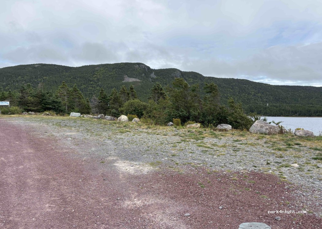 Nice flat community centre parking for RVs by the pond facing the mountains. Go to the end of the short road. Perfect spot as it is close to the hiking trails.