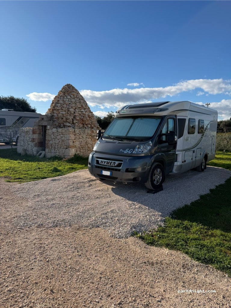 La nostra area sosta è situata nell'agro di Polignano a Mare immersa tra alberi di ulivo, e una vista mozzafiato sull'abbazia di San Vito. Il terreno è abbastanza pianeggiante e permette una sosta di camper, roulotte e tende molto agevole. Attualmente abbiamo un solo bagno con doccia, ma dalla primavera 2026 saremo attrezzati con altri 2 bagni con doccia. E' possibile fare passeggiate in sicurezza nei nostri 3 ettari di terreno tra mandorli e ulivi, adiacenti alla struttura. Stiamo attrezzando un'area fitness e body building con la supervisione di Laura e Simone personal trainer qualificati. Siamo a 1 km dalla spiaggia, dal porto e a 3 km dal centro (5 minuti in macchina). A 1km è presente una pista ciclabile di fronte al mare che porta al centro di Polignano.