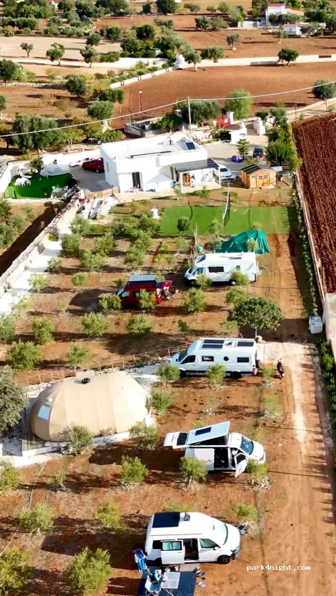Unser Rastplatz liegt in der Landschaft von Polignano a Mare, umgeben von Olivenbäumen und mit einem atemberaubenden Blick auf die Abtei San Vito. Das Gelände ist relativ flach und bietet somit ausreichend Platz für Wohnmobile, Wohnwagen und Zelte. Aktuell verfügen wir über ein Badezimmer mit Dusche, werden aber bis Frühjahr 2026 zwei weitere Badezimmer mit Duschen zur Verfügung stellen. Genießen Sie sichere Spaziergänge auf unserem 3 Hektar großen Gelände, das von Mandel- und Olivenbäumen umgeben ist und direkt an das Grundstück angrenzt. Wir richten derzeit einen Fitness- und Bodybuilding-Bereich ein, der von den qualifizierten Personal Trainern Laura und Simone betreut wird. Wir befinden uns 1 km vom Strand und Hafen und 3 km vom Zentrum entfernt (5 Autominuten). Ein Radweg entlang der Küste führt ins 1 km entfernte Zentrum von Polignano.