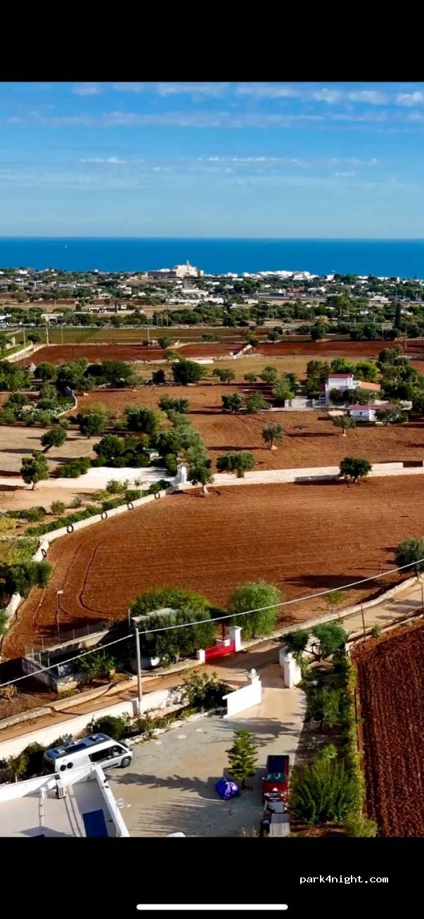 Notre aire de repos se situe dans la campagne de Polignano a Mare, entourée d'oliviers et offrant une vue imprenable sur l'abbaye de San Vito. Le terrain, relativement plat, facilite le stationnement des camping-cars, caravanes et tentes. Nous disposons actuellement d'une seule salle de bain avec douche, mais deux autres seront équipées de douches d'ici le printemps 2026. Vous pourrez profiter de promenades en toute sécurité sur nos 3 hectares de terrain, plantés d'amandiers et d'oliviers, attenants à la propriété. Nous aménageons actuellement un espace fitness et musculation, encadré par Laura et Simone, coachs sportifs diplômés. Nous sommes à 1 km de la plage et du port, et à 3 km du centre-ville (5 minutes en voiture). Une piste cyclable face à la mer vous mènera au centre de Polignano, à 1 km.