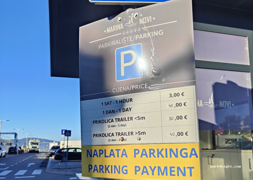 Marina Car Park - Expensive. It is therefore not a great option but we wanted to be in Novi and nearby campsites were packed.
