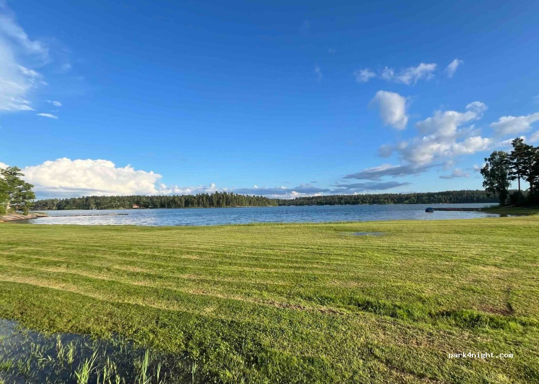 Traumhafte Lage, sehr ruhig (Ende August), Hügel mit Stellflächen unter Bäumen ohne Strom, zwei große Wiesenflächen mit Strom. Sanitär sehr einfach, aber sauber. Preis 300 SEK aufgrund der tollen Lage angemessen. Ausreichend Wege zum Gassigehen mit Hind. Personal sehr freundlich, sprechen Englisch, immer erreichbar.