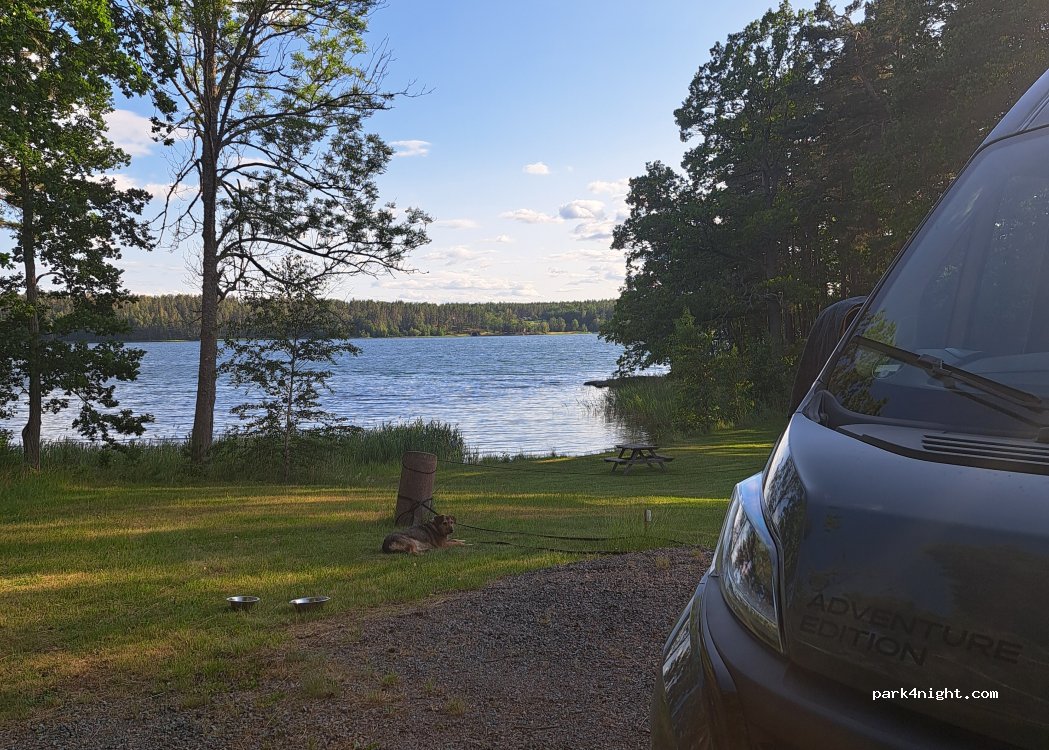 Ein sehr schöner Platz. Wenn man etwas weiter durchfährt kommen links ein paar schöne Spots am Wasser. Wunderbar! Waschräume sind auch ok, nicht modern aber in Ordnung. Allerdings haben wir in der Nebensaison (September) 250 SEK pro Nacht gezahlt.