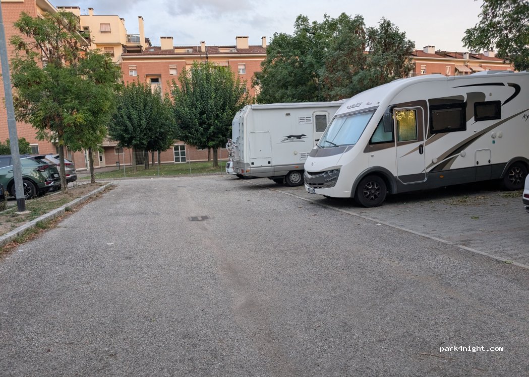 Ci siamo fermati in questo posto per mangiare ragù alla bolognese al ristorante dietro l'angolo. C'erano già altri camper parcheggiati nel parcheggio, probabilmente da diversi giorni. Non c'era alcun cartello che vietasse l'accesso. Ci è piaciuto molto il parco proprio accanto e il ristorante era delizioso!
