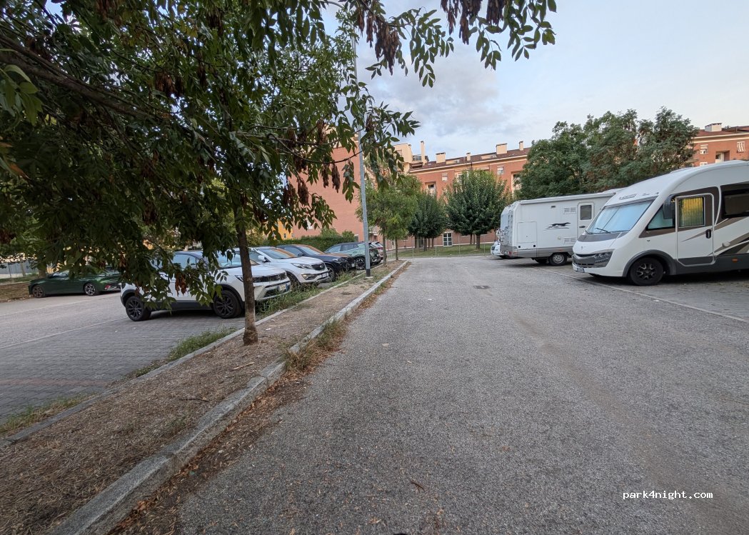 Neben einem Park und Sportanlagen. Wir haben hier von Freitag auf Samstag übernachtet. Es gab bis ca 23h immer mal wieder etwas Lärm von abfahrenden Autos & Leuten, die sich voneinander verabschiedet haben aber keine Party im Park und auch keine dubiosen Autos. Wohnmobil war den ganzen Samstag über dort & wir sind mit dem Bus in die Stadt gefahren. Hat problemlos funktioniert.
