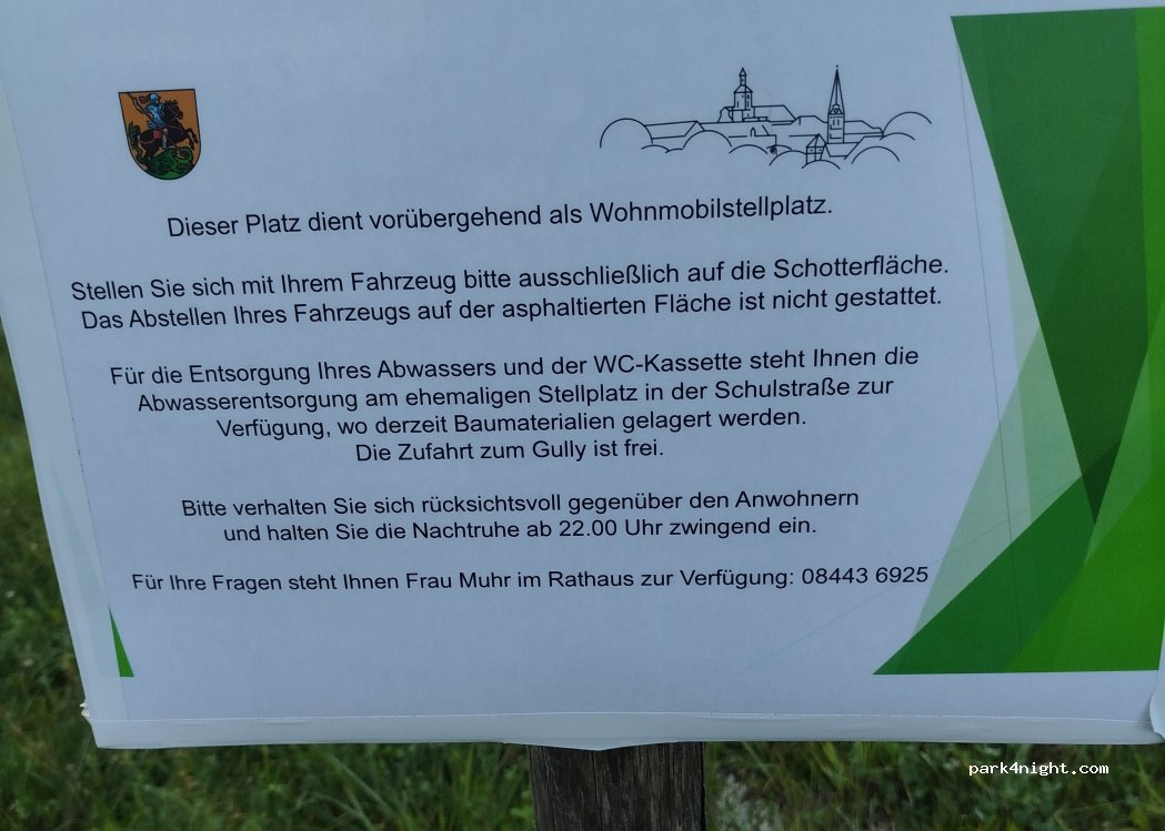 Für einen Ausweichplatz wirklich sehr schön und ruhig gelegen. Einfahrt ist von der Neuburger Straße 17 (nicht in die Marktmühlstraße fahren!).