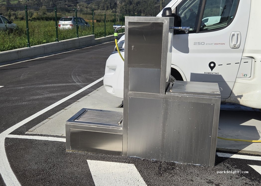 Der Stellplatz bietet 62 großzügige Parzellen, alle mit Stromanschluss, Zugang zu Trinkwasser sowie Entsorgungsmöglichkeiten für Grau- und Schwarzwasser.