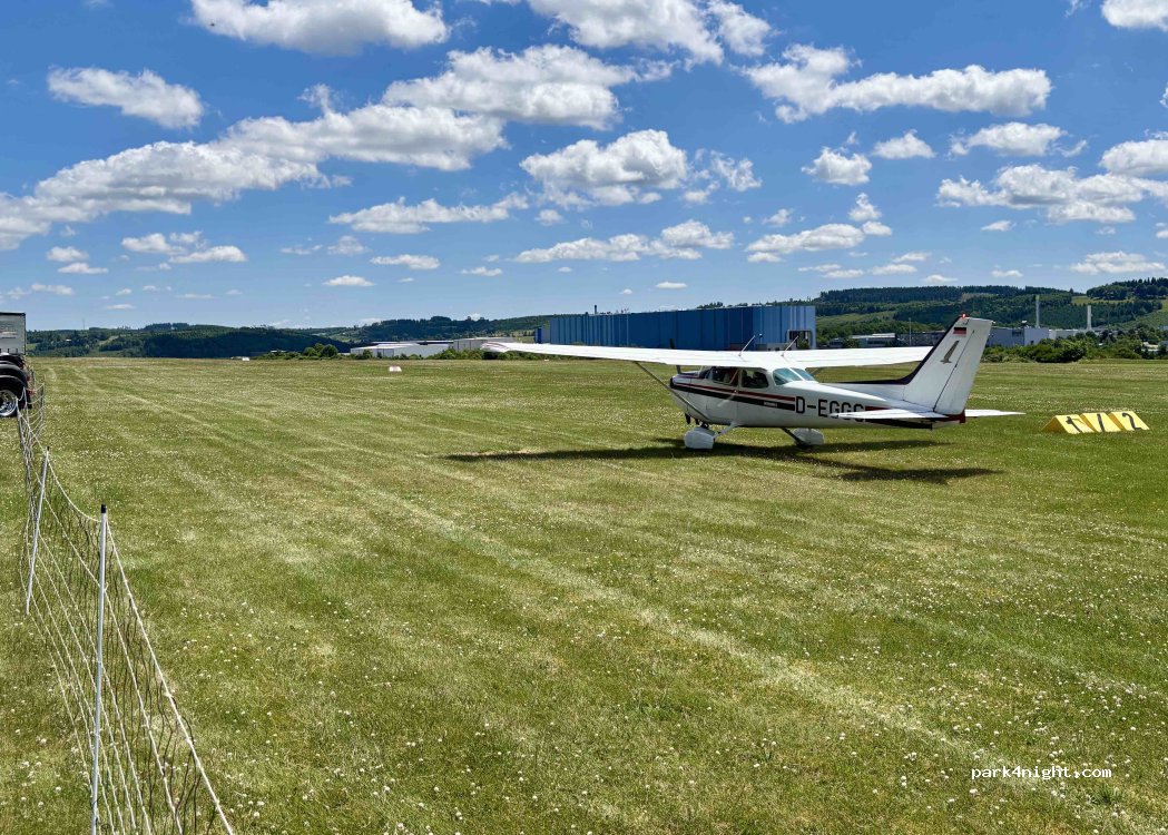 The parking space is located on an airfield. On nice days, you can expect some flight activity. The excellent view is rewarded with a wonderful sunrise in the morning and a magnificent sunset in the evening. Sightseeing flights can be booked during flight activity.