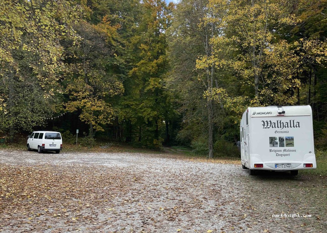 Ruhiger Waldparkplatz in einer Sackgasse. Nur erreichbar über die Ortschaft Weßling. Platz ist sehr sauber und ein guter Ausgangsplatz für lange Spaziergänge, auch mit Hunden.