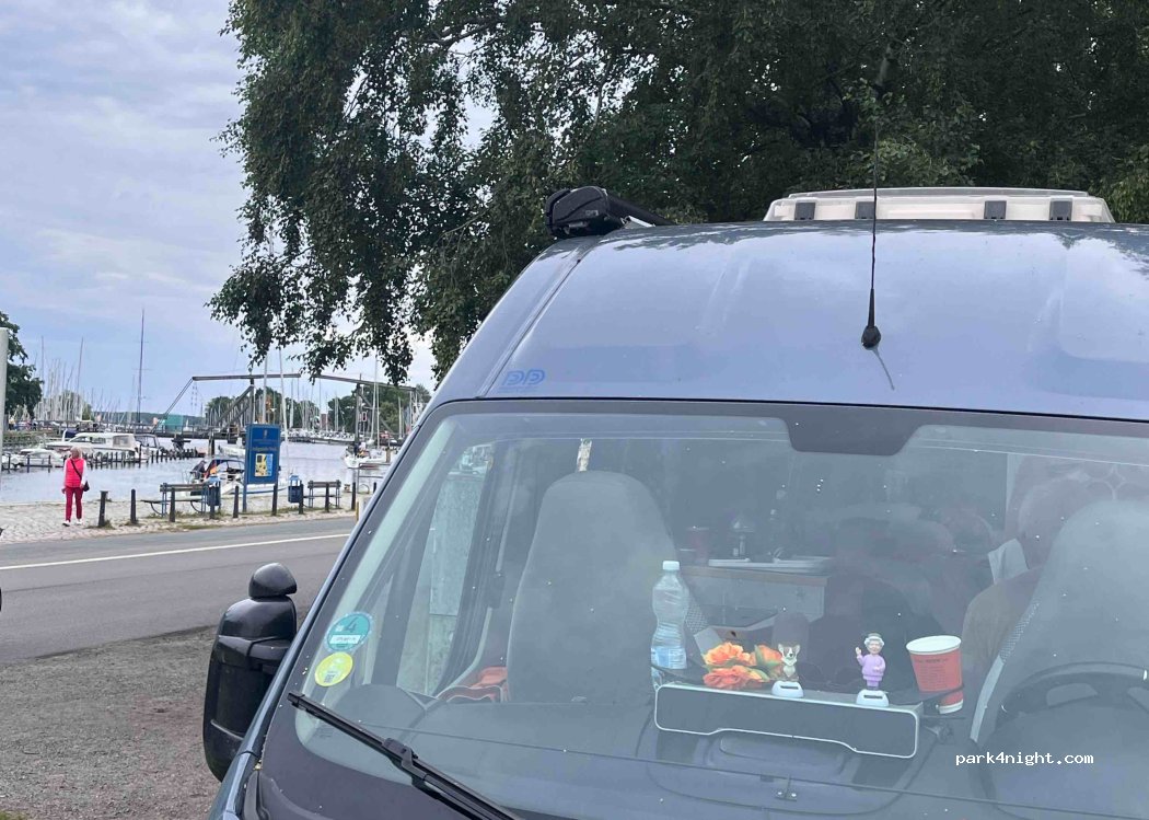 Very good, quiet, paid-parking. Busy but loads of space. Lovely small harbour with smoked fish places. Good walk into the larger Greifswald along riverside. Small bins available. Paid toilets are OK but not very clean.