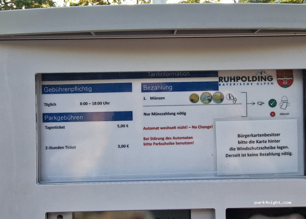 Schön ruhig. 3 Euro für 2 Stunden. 5 Euro für den ganzen Tag. Nur 0,50€, 1€ und 2€ Münzen