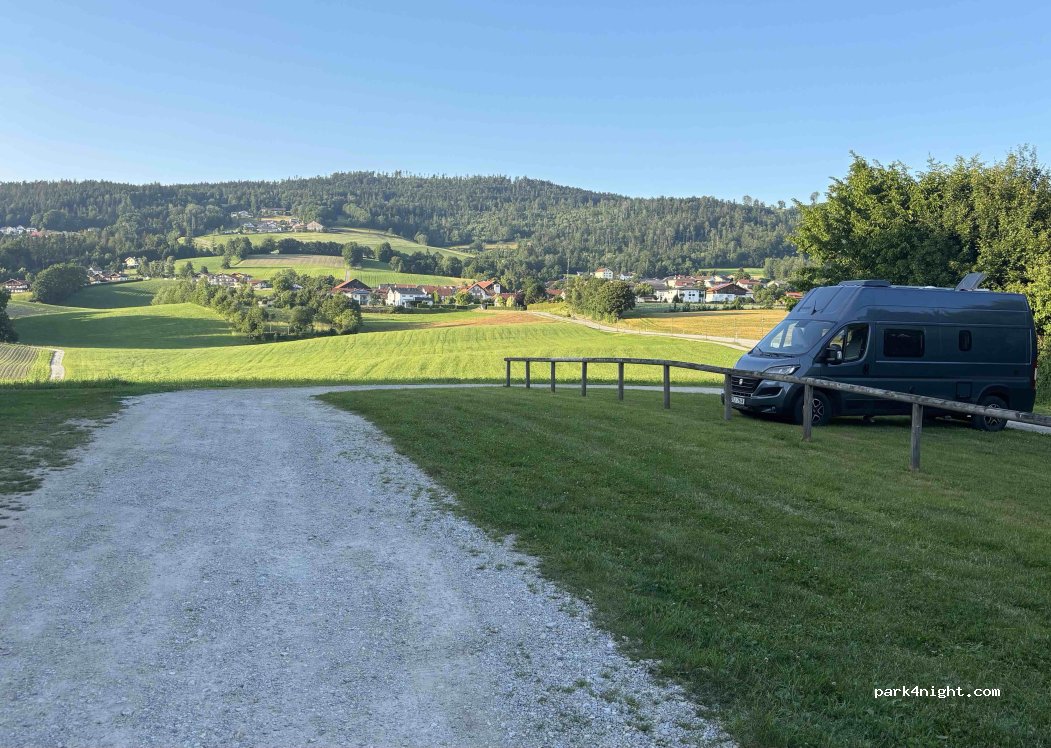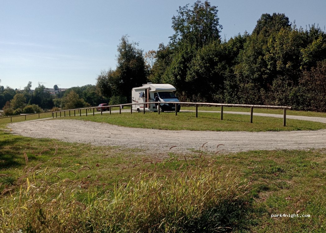 Ruhiger Parkplatz mitten im Grünen, relativ leise. Ein schönes Gasthaus ist direkt am Parkplatz über der Strasse. Schöne Radtouren sind von hier aus möglich.